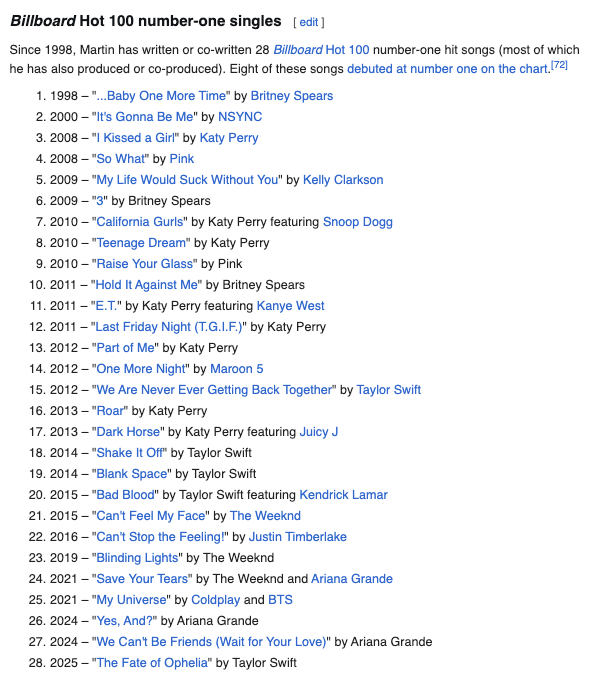 Curious which of your favorite songs were written by Max Martin? Check out this Wikipedia page and this Spotify list.