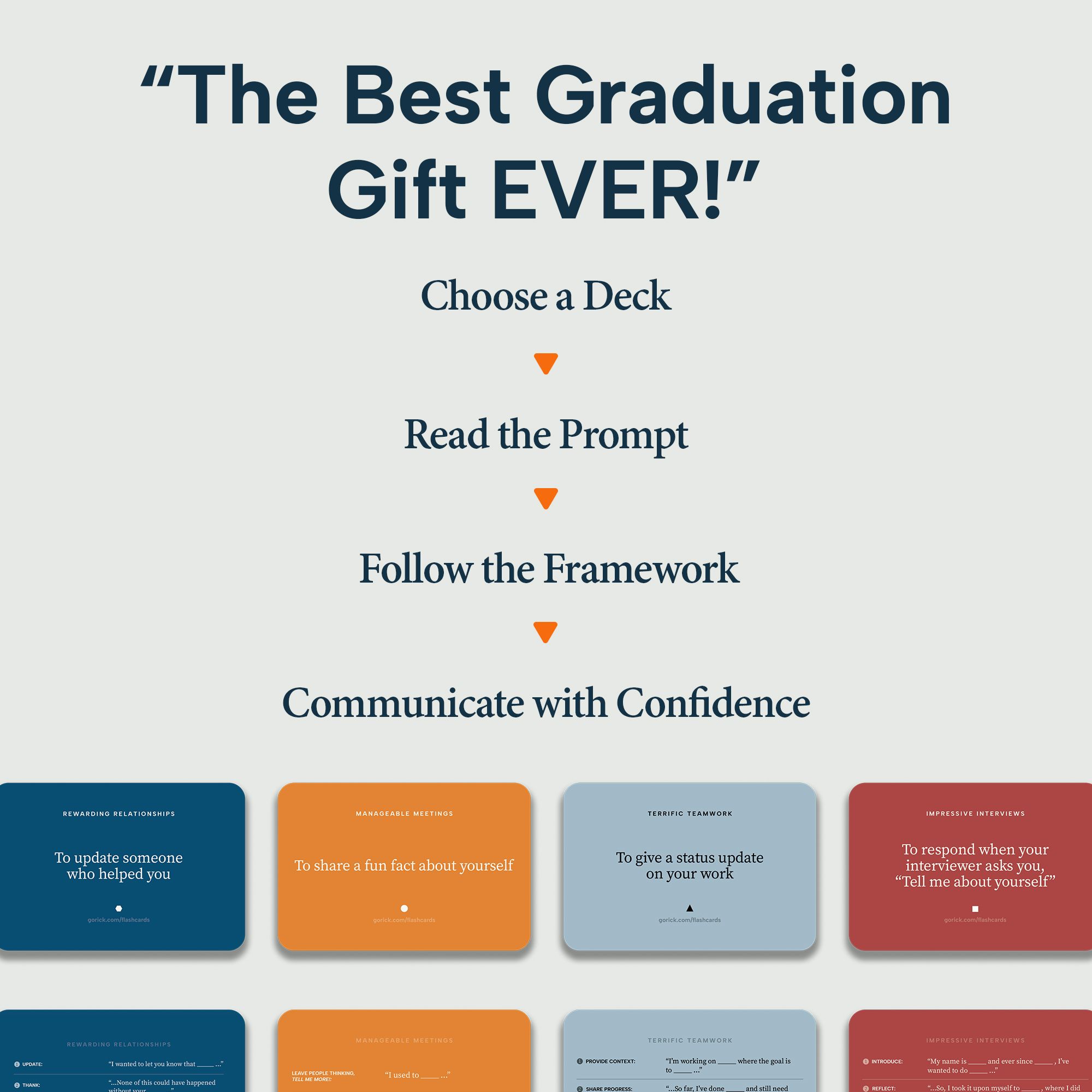 This tool is used and approved by new hire teams at Fortune 500 companies, college career offices, and most importantly, parents and grandparents. From starting a new role to getting promoted, new grads will find the language—and confidence—to gracefully navigate stressful workplace scenarios and take ownership of their career. Tap here to shop now or below!